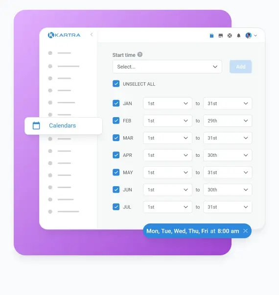 Effortlessly manage your schedule from a single interface with Kartra’s unified calendar system.