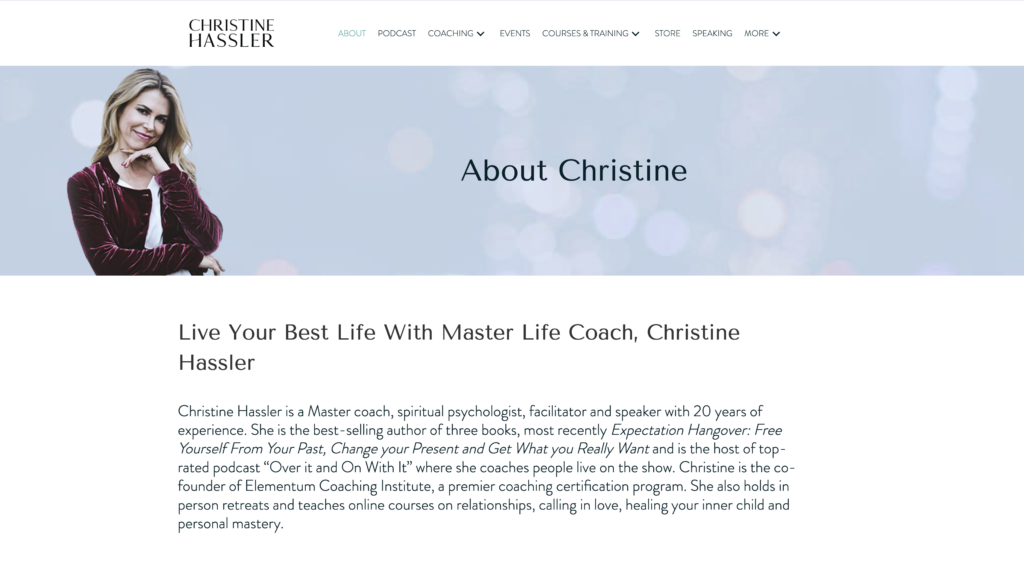 Christine uses her About page to establish credibility