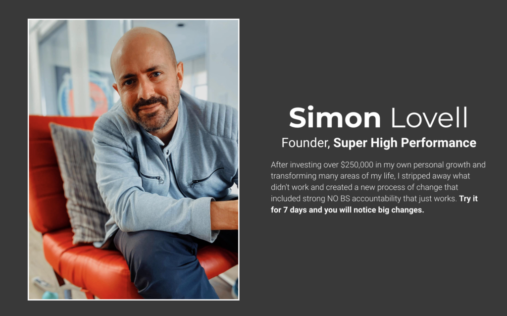 Simon Lovell is a high-performance coach who assists entrepreneurs in achieving personal and professional excellence. His services include coaching programs focused on self-awareness, emotional intelligence, habit formation, and accountability to drive success.