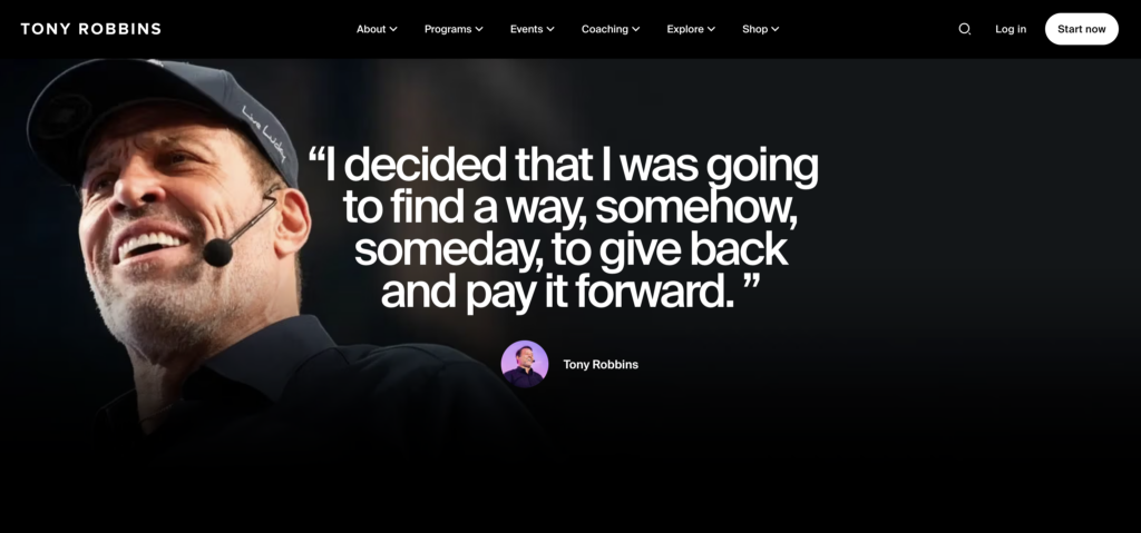 Tony Robbins use of proprietary photography enhances his website