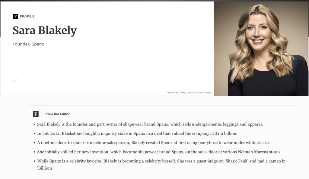 - Sara’s personal brand is built on her journey from saleswoman to billionaire inventor. She’s known for her authenticity, resilience, and commitment to empowering women in business.