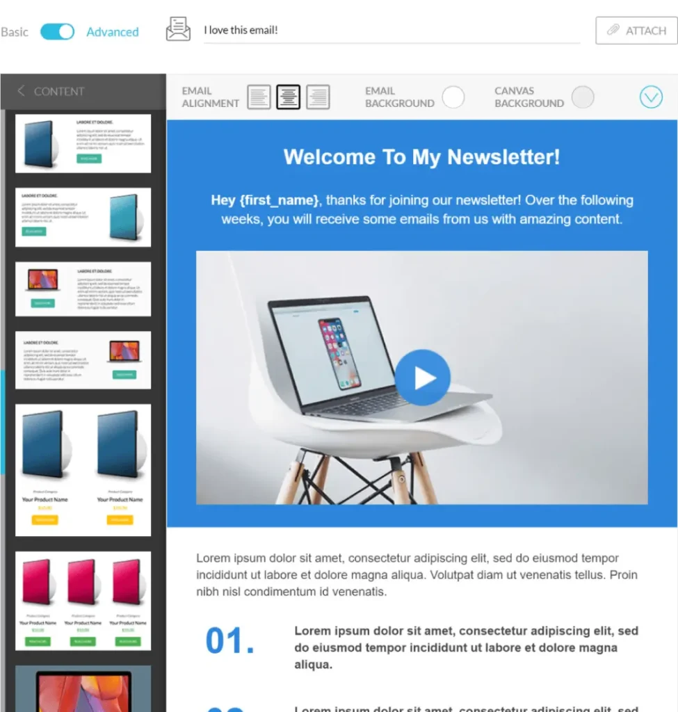 Some marketers may enjoy designing email templates from scratch, but this process is time-consuming and frustrating for many small business owners who need to configure and implement email campaigns quickly. Email automation software that includes a user-friendly email builder will save you time and the costs of outsourcing, while guaranteeing the quality of the end result. And with drag-and-drop editors, you can easily customize the template to fit your content and brand design.