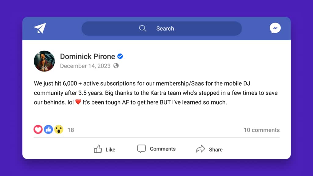 Kartra’s membership site features allowed Dominick to nurture his community of DJs, offering personalized experiences and fostering connections.