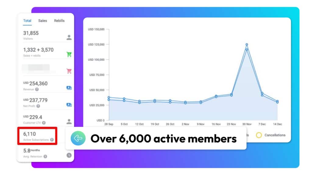 His membership numbers skyrocketed from 30 to over 6,000 members, thanks to Kartra’s scalability and advanced features. And Dominick recently reached a new record: generating $254,360 in one month. He’s now on track to gross $2.5 million for the year!