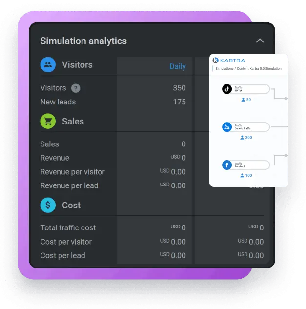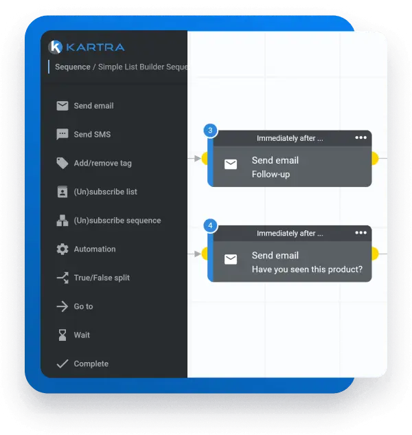 Whether you’re a beginner or a certified sales funnel builder, Kartra lets you create beautiful marketing funnel workflows with our drag-and-drop editor.