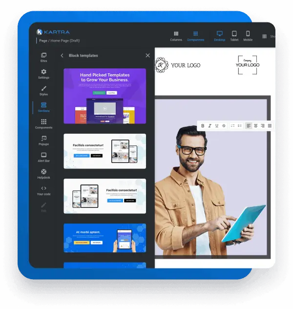Not at this time. While you can’t rebrand Kartra and sell it as your own software, you can customize many elements. Our drag-and-drop editor makes it easy to modify your landing pages, email templates, and membership sites to fit your company branding.