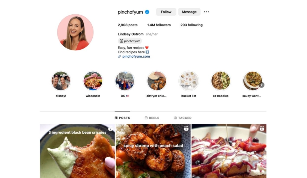 Lindsay Ostrom’s instagram account for Pinch of Yum
